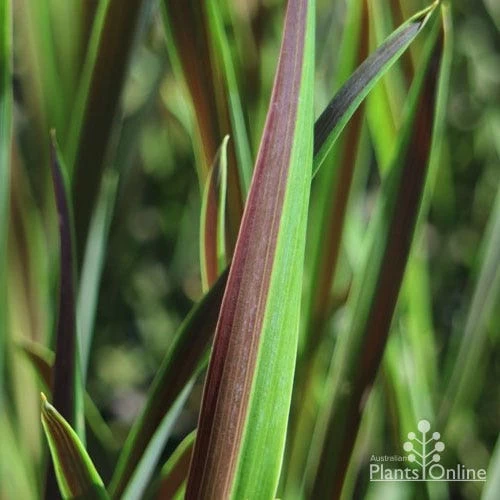 APPEARANCE : Slender milk-chocolate leaves, each with a vibrant stripe of lime green along each edge, grow in a fountain tuft from a main trunk.