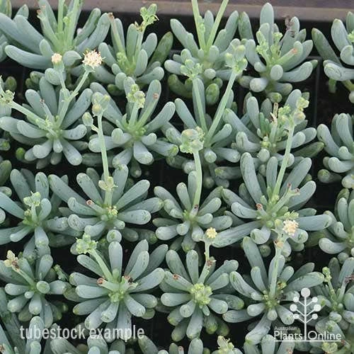 Groundcover succulent, silvery-blue, unmistakable and very effective in mass plantings. Plays happily with all kinds of waterwise and drought tolerant plants.